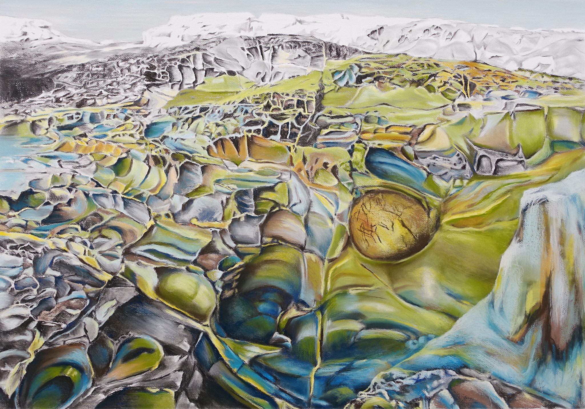 LANDSKAP - TIDSKAPSEL (LANDSCAPE - TIME CAPSULE) 2025, Dry pastels and coal on paper, 100 x 70 cm